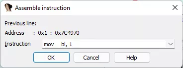 接下來要把 mov bl, al 改成 mov bl, 1 直接塞個 1 進去。