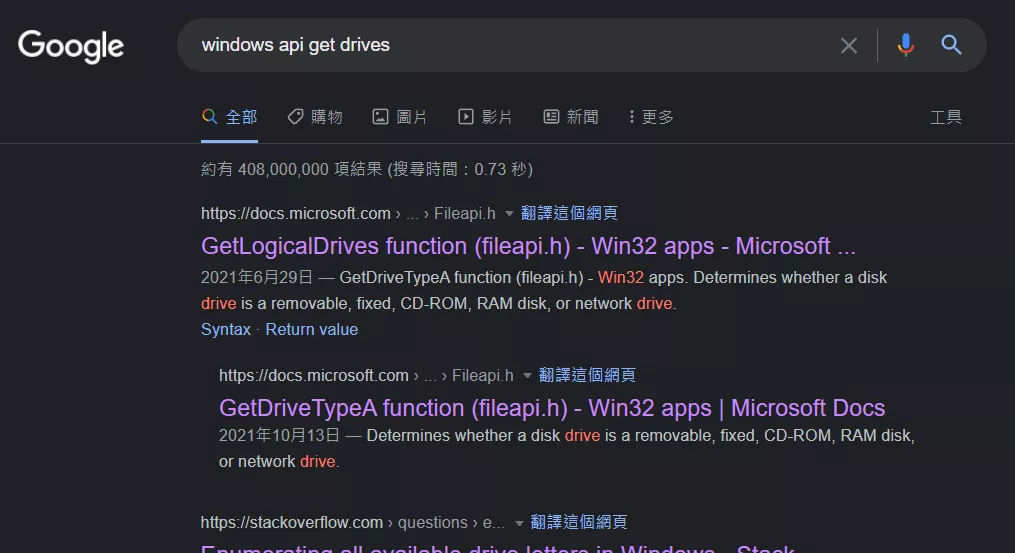 在搜索框中搜索 GetLogicalDrives:
