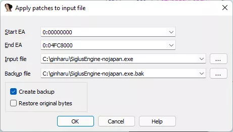 然後把 exe 拖進去(這裏是已經破解過地區驗證的 exe,名叫 SiglusEngine-nojapan.exe),會顯示下圖。